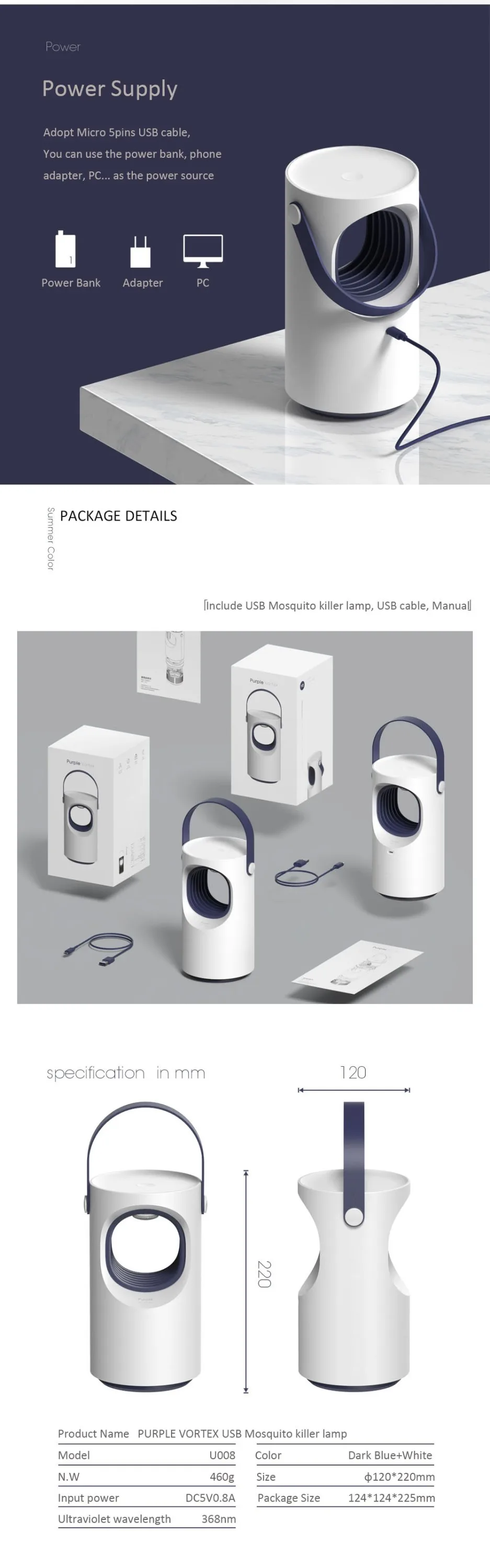 U008 2019 outdoor photocatalyst usb electric electronic battery rechargeable uv Led lighting mosquito killer lamp terminator camping