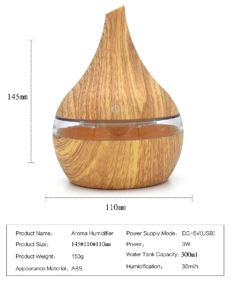 300ml USB Electric Aroma air diffuser wood Ultrasonic air humidifier Essential oil Aromatherapy cool mist maker for the home