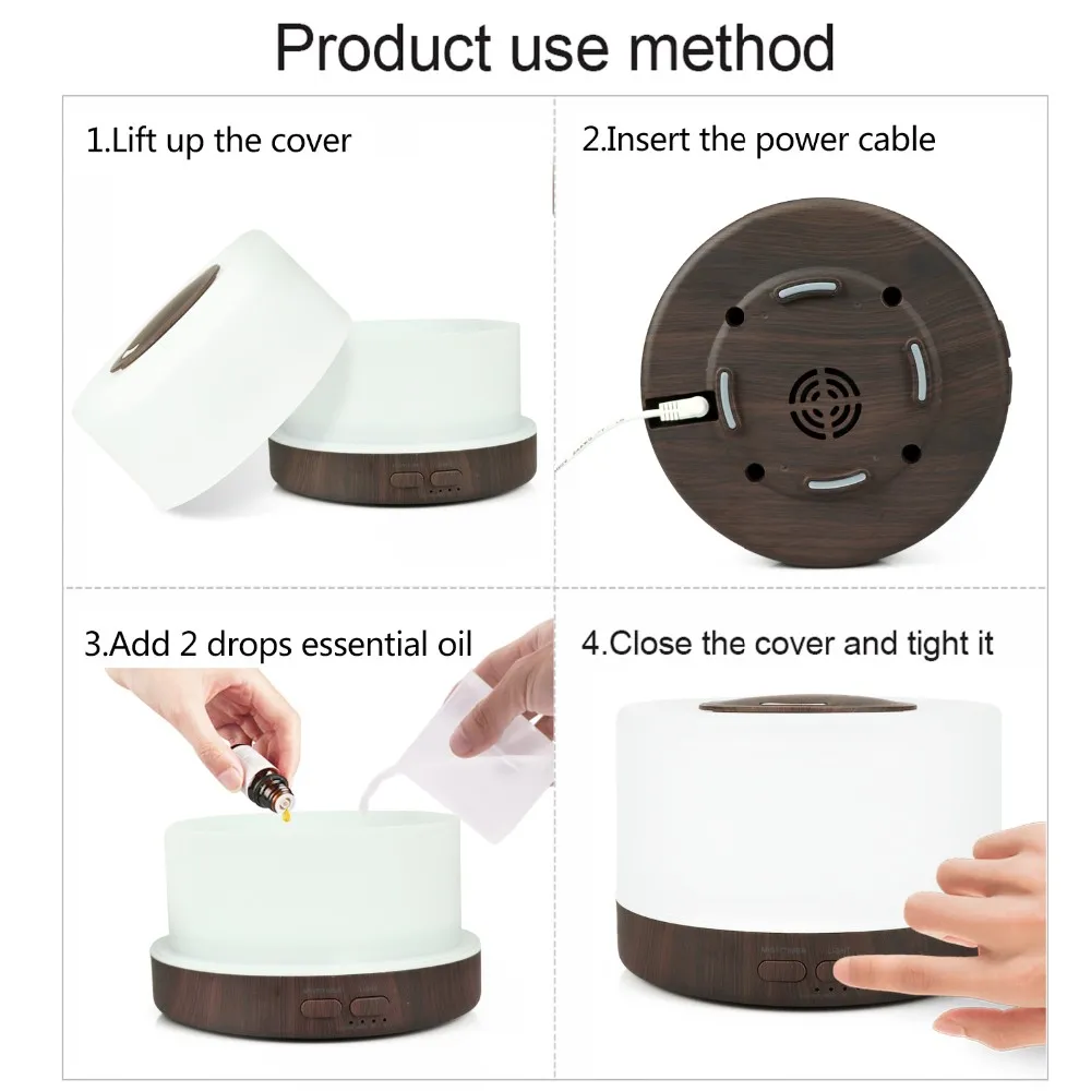 D006 500ml ac dc plug adapter led aroma electric ultrasonic diffuser essential oil air freshener diffuser outlet nebulizer