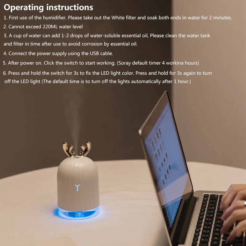 USB Aroma Essential Oil Diffuser Ultrasonic Cool Mist Humidifier Air Purifier LED Night light Humidifier Deer for Office Home
