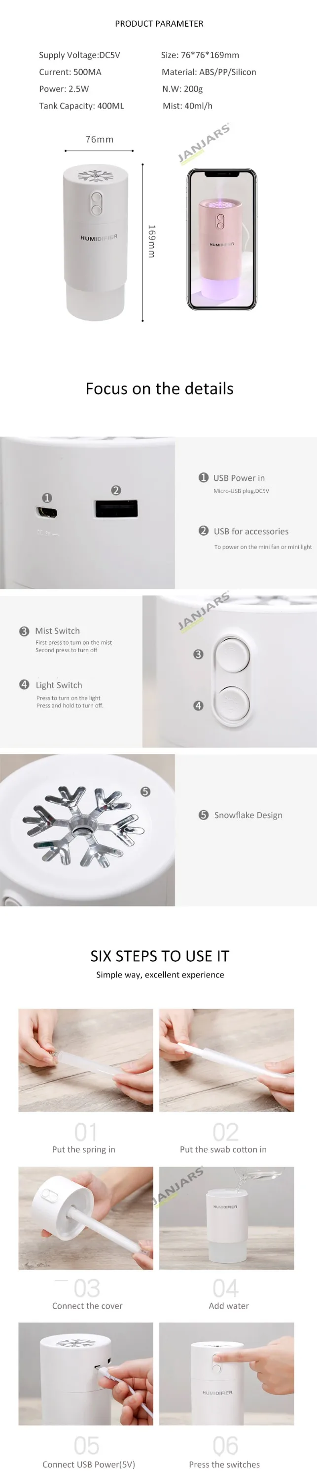 - Made of safe, health friendly and fireproof ABS and PP materials, this aroma humidifier has got CE certifications to ensure you premium quality and good health. It will envelop your surroundings effectively and brings a SPA like feeling to your home and relax from a long day working.