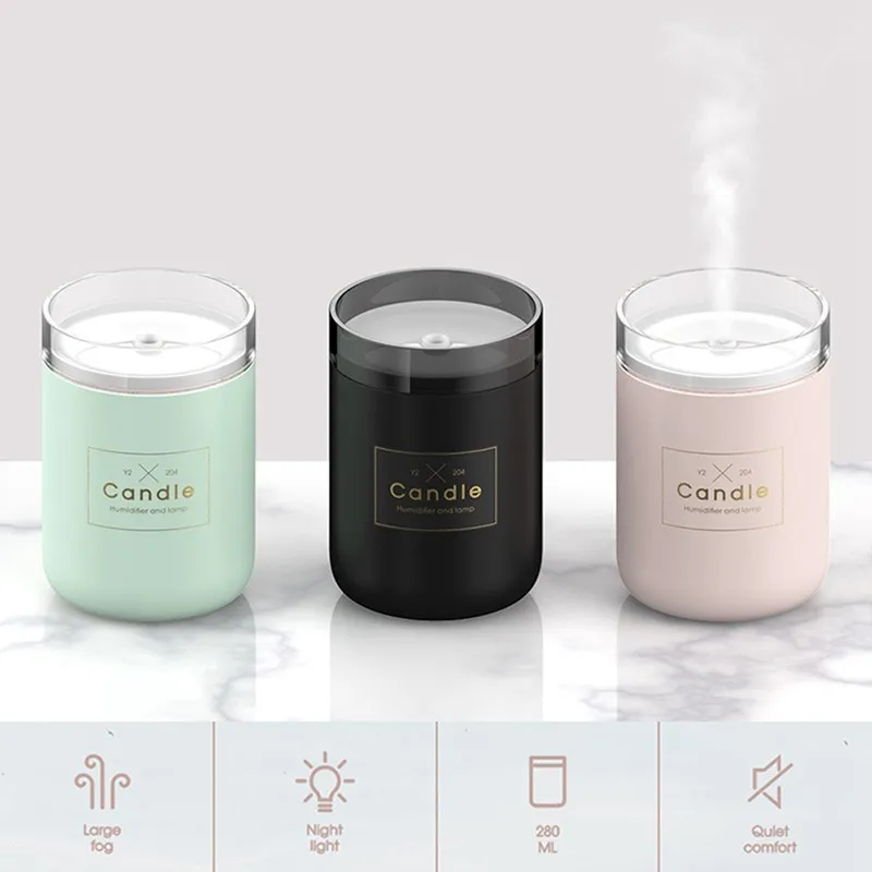 USB candle Wood ceramic metal salt lamp kids cold air essential oil diffuser remote control car aroma mist humidifier 280ML