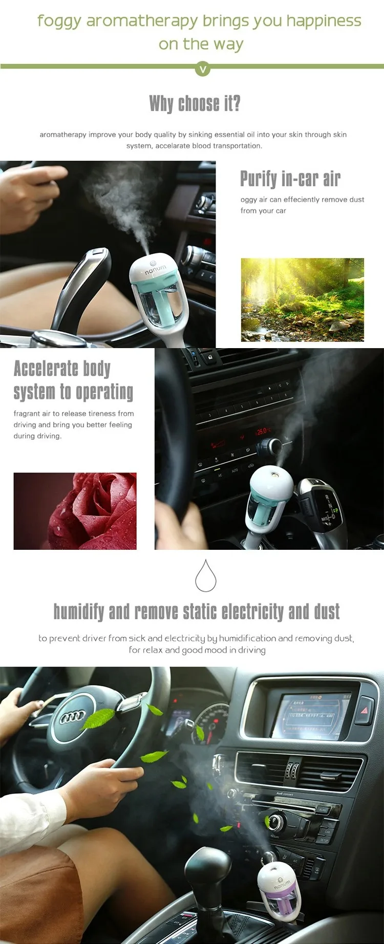 usb mini ultrasonic car aroma aromatherapy freshener essential oil air purifier diffuser