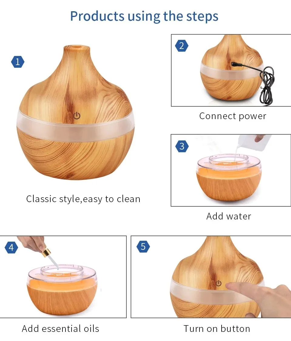 - Made of safe, health-friendly and fireproof ABS and PP materials, this aroma humidifier has got CE certifications to ensure you premium quality and good health. It will envelop your surroundings effectively and brings a SPA like feeling to your home and relax from a long day working.