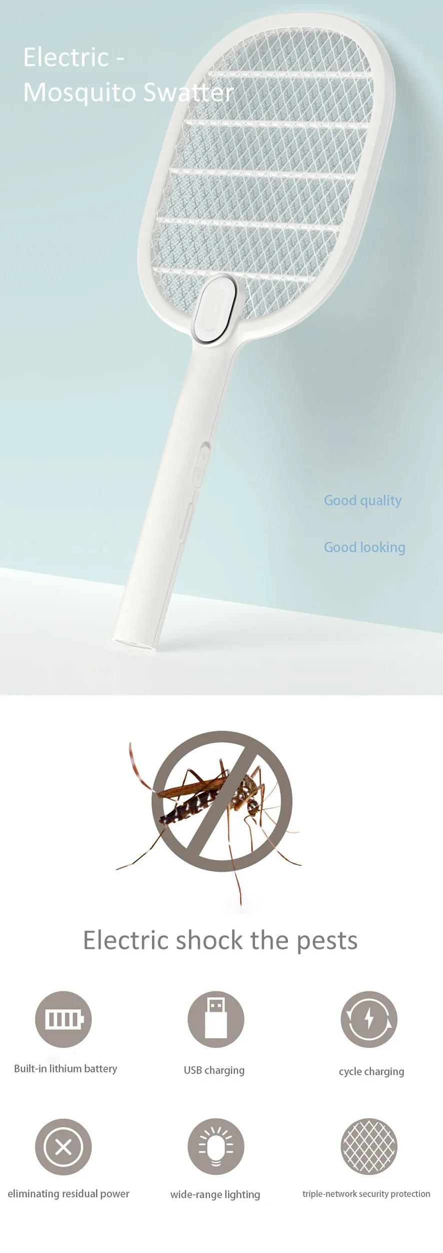 U007 electric electronic rechargeable large lithium battery zapper fly bug zap single layer mosquito swatter killer mesh